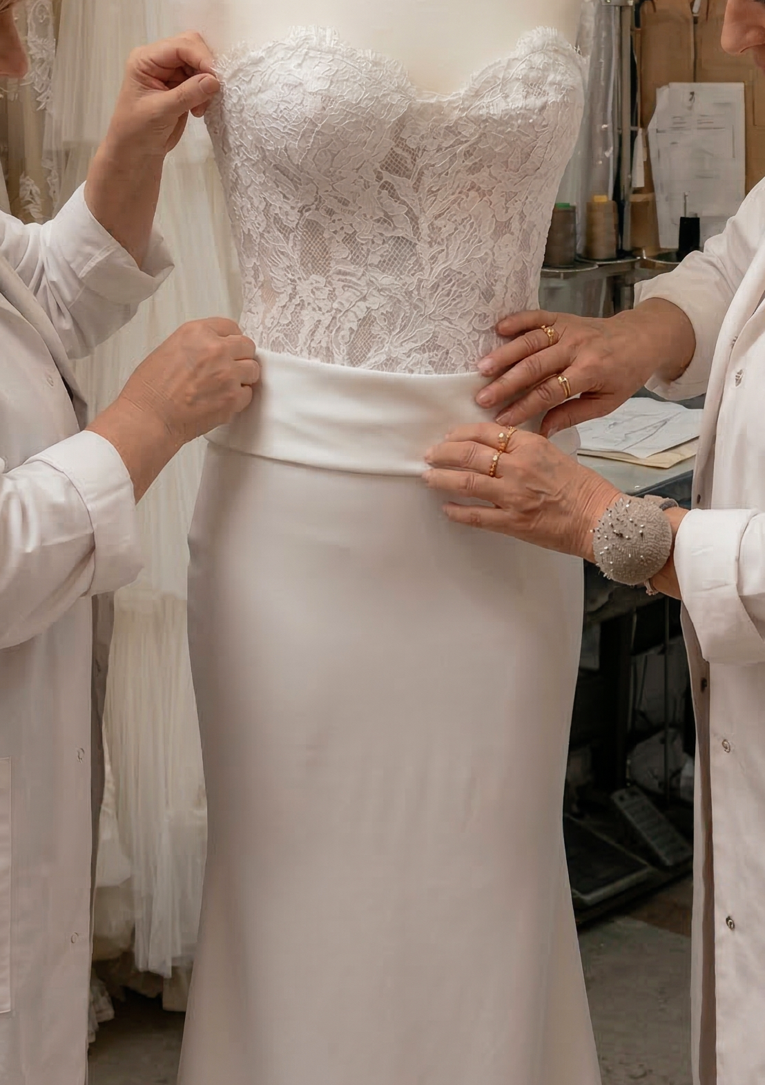 Each gown is created through a private, highly personalized process designed to ensure exceptional precision and uncompromising fit.