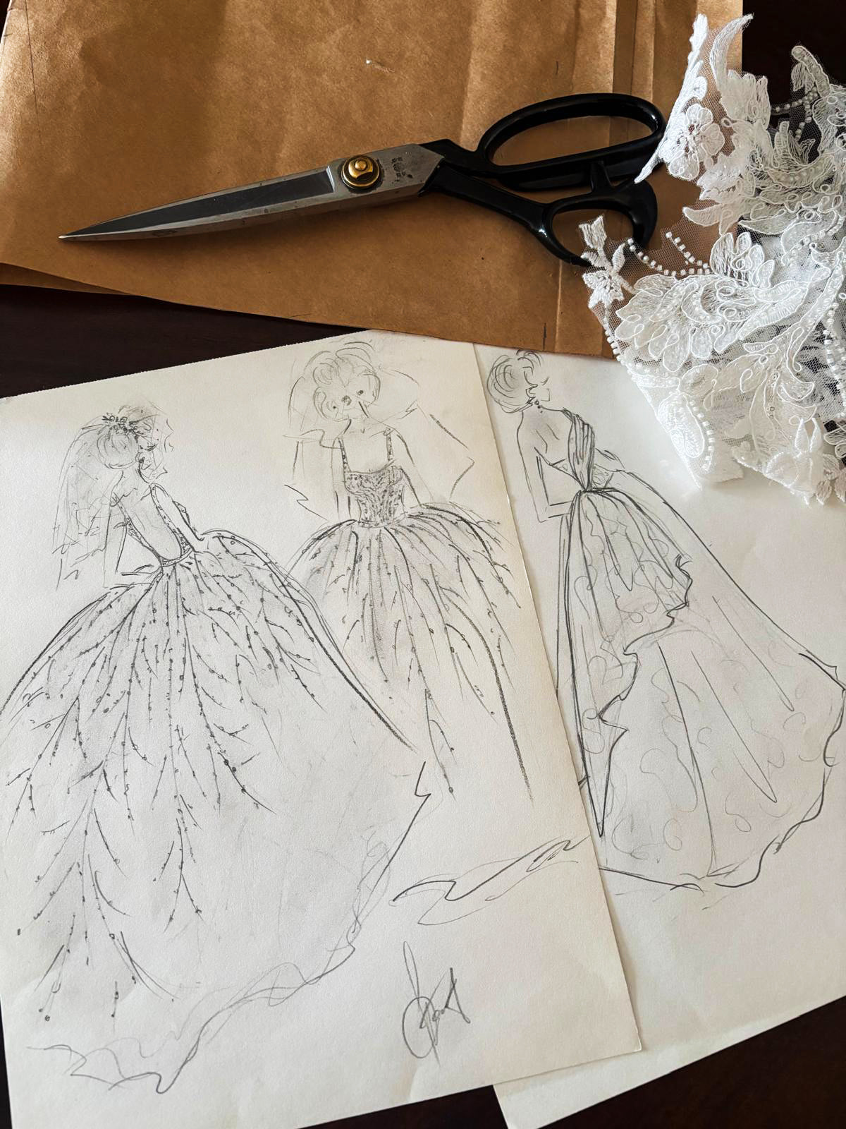 Each creation is conceived as a personal work of art — meticulously designed, sculpted, and hand-finished using the finest fabrics and couture techniques. From the first sketch to the final fitting, every gown reflects an uncompromising dedication to quality, proportion, and grace.